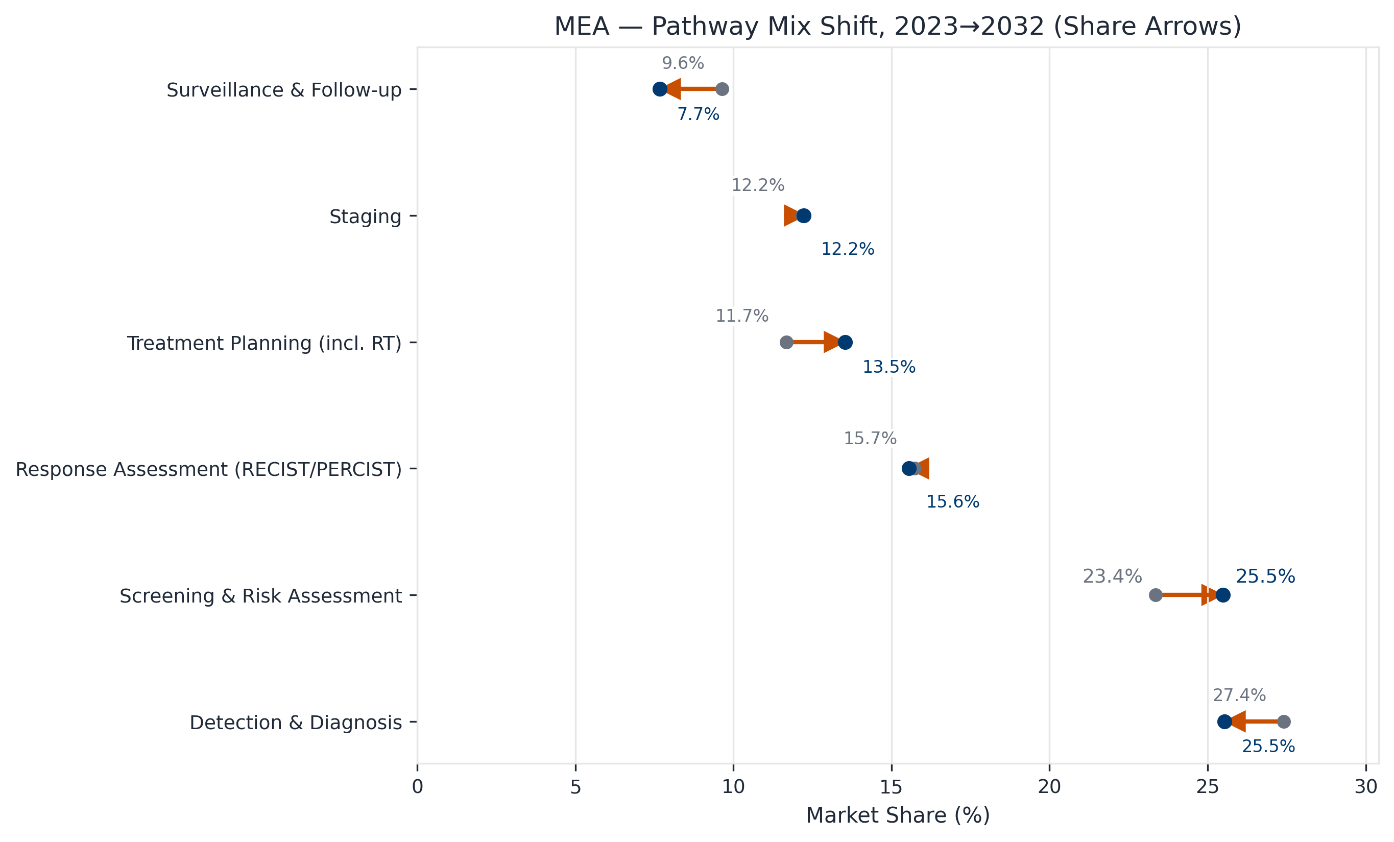 Middle East & Africa Oncology Imaging AI Pulse 2025–2032 is Marketstrat’s focused regional market sizing and forecasting report on AI in cancer imaging across MEA. It quantifies market growth and identifies where demand concentrates across the oncology imaging pathway—especially in workflows that scale across sites and support constrained specialist capacity.